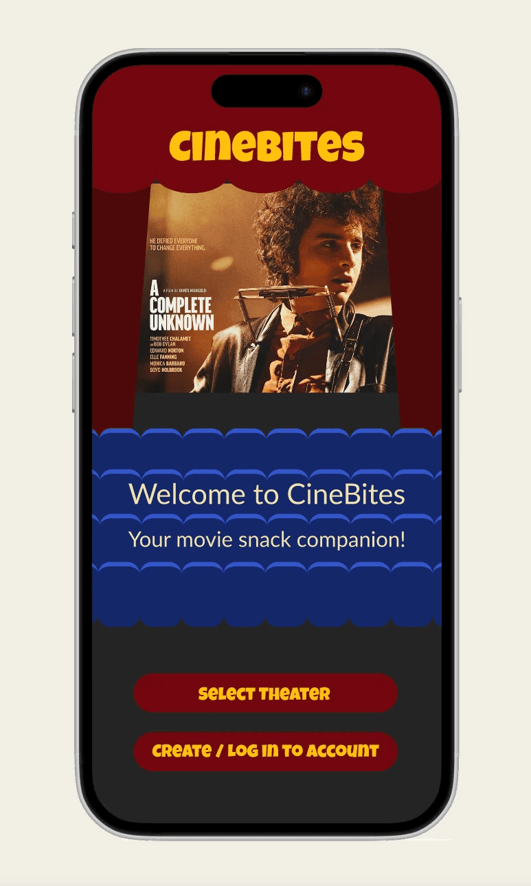 Role: UX/UI Designer – Led the research, design, and testing process to develop a seamless user experience that aligns with the CineBites brand identity