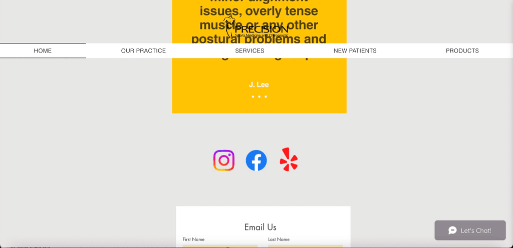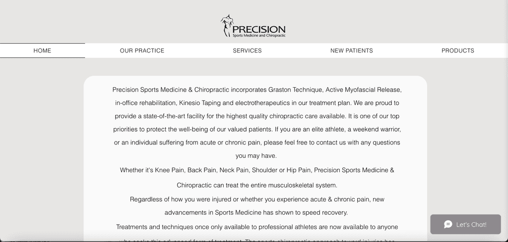 Problem: The current Precision Sports Medicine & Chiropractic website lacks clarity in its layout and content hierarchy, making it difficult for users to find key information quickly. The absence of clear call-to-action buttons results in a confusing user journey, especially for those looking to book an appointment or learn about services. Additionally, the outdated design lacks visual appeal and engagement, failing to reflect the practice’s professionalism and expertise.