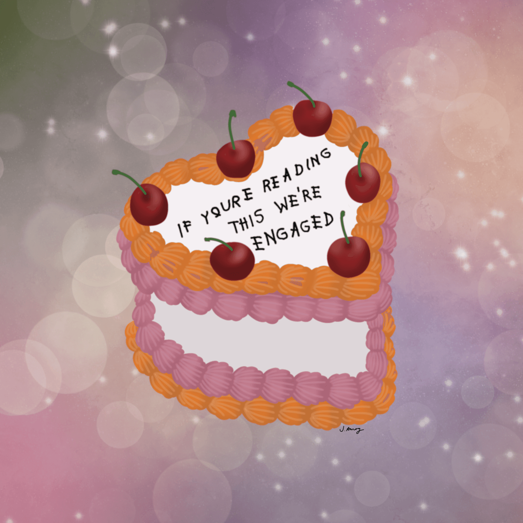 Custom artwork for an engagement party announcement
