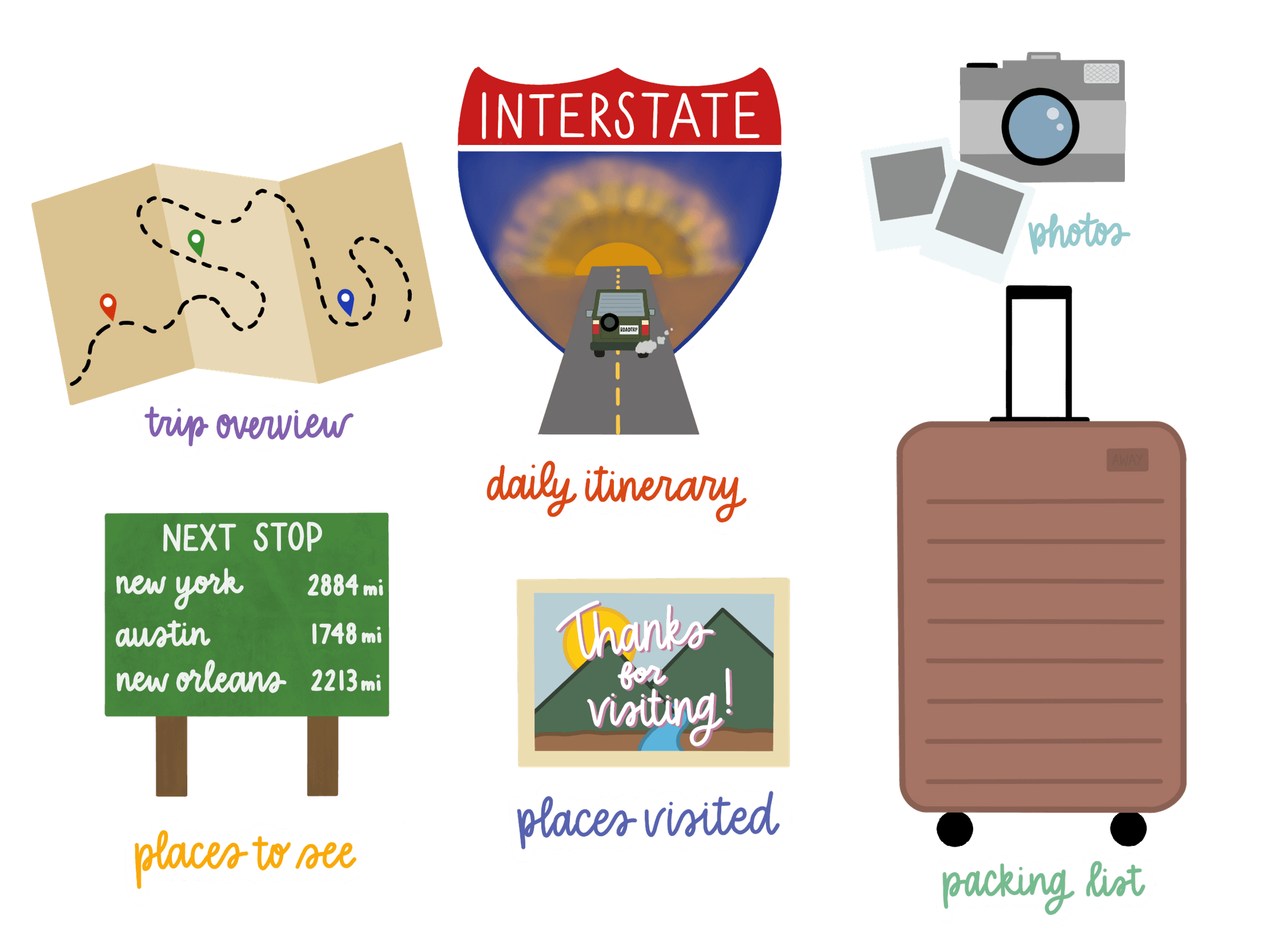 Artwork "stickers" for a digital travel planner